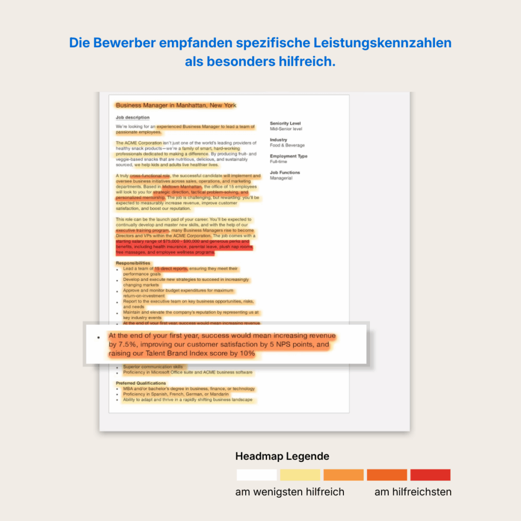 Es geht darum, ein Leistungspensum zu definieren, das von neu eingestellten Personen nach einem Jahr erwartet wird. Bewerber:innen wollen konkrete Informationen, welche Meilensteine sie in einem definierten Zeitraum erreichen sollen.