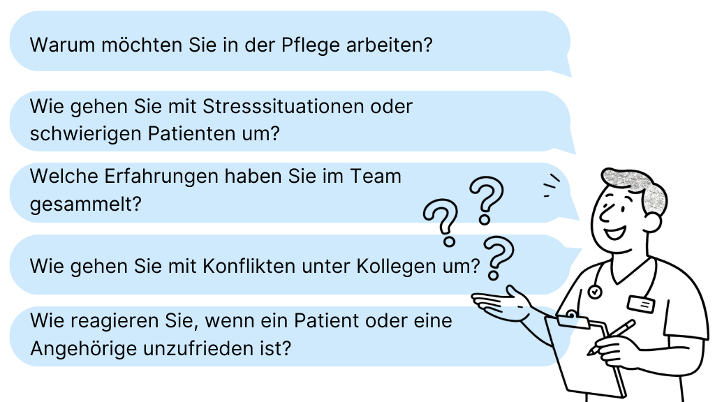 Das Vorstellungsgespräch ist oft der letzte Teil des Bewerbungsprozesses. Hier hast du die Möglichkeit, neben deinen fachlichen Qualifikationen auch deine Persönlichkeit und Motivation zu zeigen. Insbesondere im Pflegebereich legen Personalverantwortliche Wert darauf, wie BewerberInnen mit Menschen umgehen, wie ihre Kommunikationsweise ist und wie sie in stressigen Situationen reagieren.